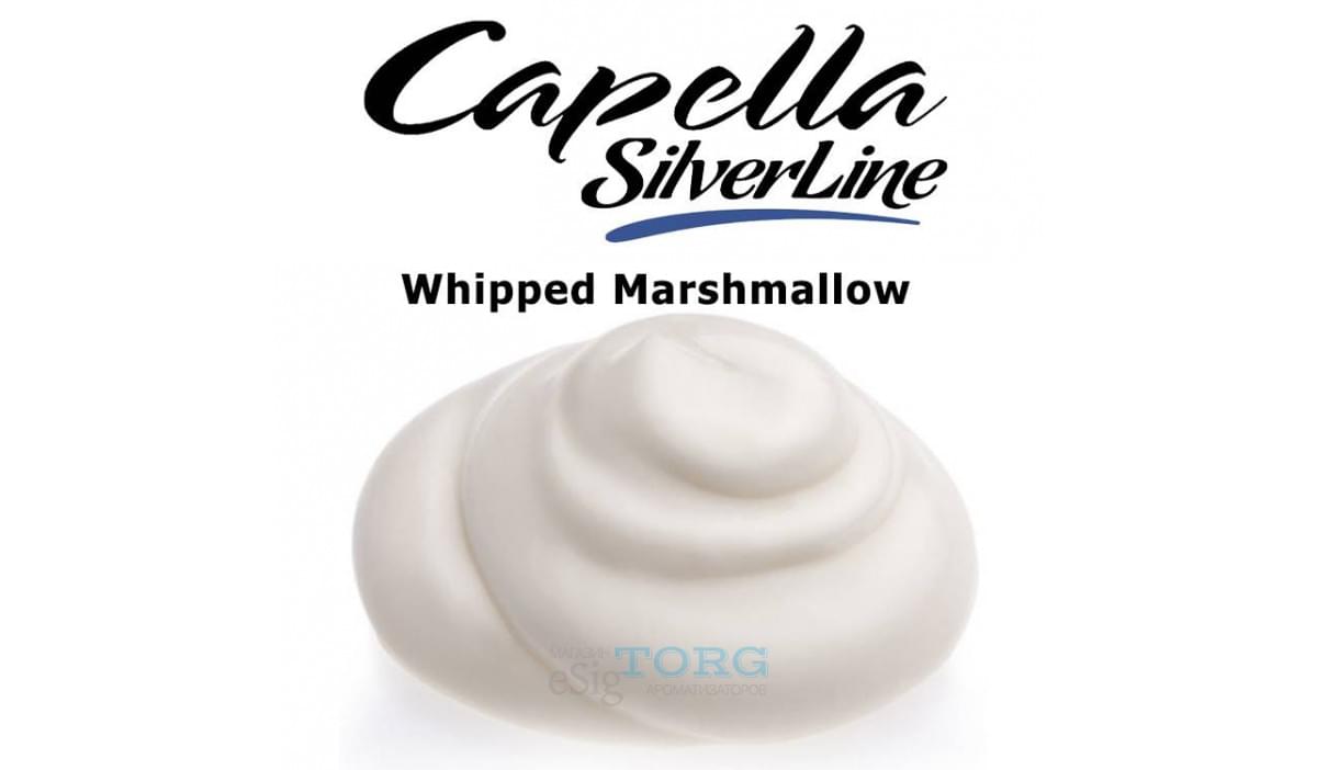 Whipped Marshmallow — взбитые сливки и зефир. Это нежная, мягкая арома с нотами ванили и легким фруктовым послевкусием. ТХ очень слабый. Рекомендуется смешиваяать Whipped Marshmallow от Capella SilverLine в следующих пропорциях: примерно 6% (соло-замесы) и от 0,2 до 2% (в миксах с другими ароматизаторами).